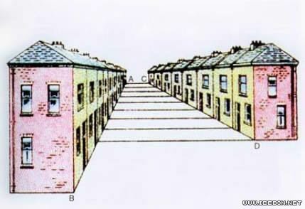 长度与透视:线AB和线CD长度完全相等,虽然它们看起来相差很大。