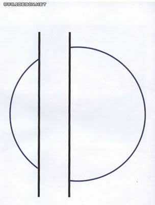 【解析】这三个圆弧看起来弯曲度差别很大,但实际它们完全一样,只是下面两个比上面那个短一些。视觉神经末稍最开始只是按照短线段解释世界。当线段的相关位置在一个更大的空间范围延伸概括后,弯曲才被感知到。所以如果给定的是一条曲线的一小部分,你的视觉系统往往不能察觉它是曲线。