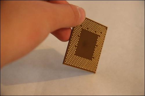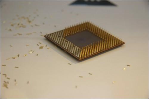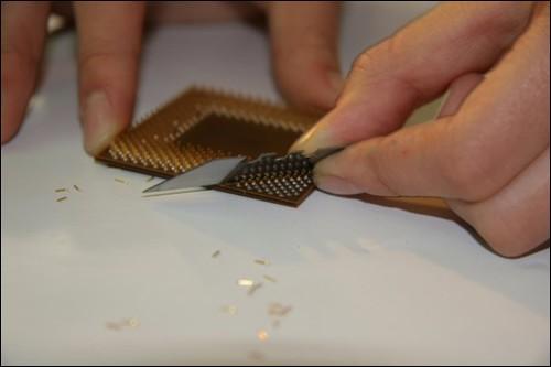 首先用小刀小心地剃除所有的针脚(对这块CPU要重复462次动作,幸好这次的主角不是SOCKET 939)
