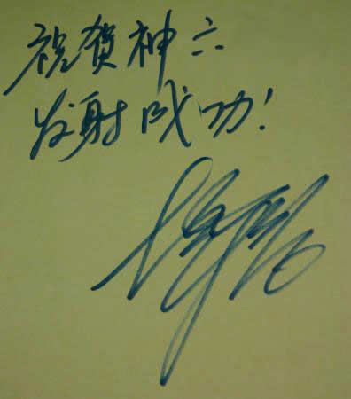 李宇春的错别字:为祝贺神舟六号发射成功的题字!